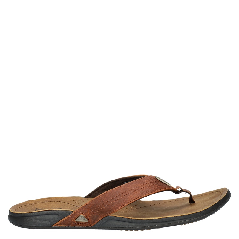 Heren teenslippers J-Bay van Reef uit de Nelson schoenen collectie, uitgevoerd in leer. Het model is voorzien van een leren voetbed, een wreefband en een rubberen loopzool.