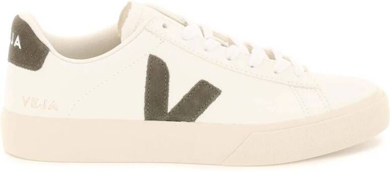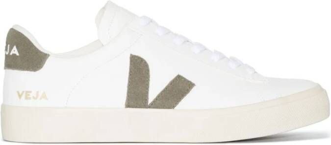 Witte ‘Campo’ sneakers van Veja. Dit vetermodel is gemaakt van chroomvrij leer en heeft een reliëflogo op de tong, het merk Signature Khaki -logo -patch in rubber en veganistisch suede en biologische katoenen schoenveters. De mesh binnenvoering gemaakt van gerecyclede materialen werd ontwikkeld om een betere weerstand tegen wrijving te krijgen. De door biologische sourced en gerecyclede binnenzool bestaat uit suikerriet, Amazon-rubber, biologisch katoen en gerecyclede Eva. Het is ingesteld op een rubberen zool gemaakt van organische en gerecyclede materialen. Dit leer ondergaat een innovatief zonneproces waarbij er geen chroom, zware metalen of gevaarlijke zuren bij betrokken zijn. Door het zonneproces te vereenvoudigen, is het gebruik van chemicaliën en energie beperkt, het gebruik van water wordt met ongeveer 40% verminderd en het gebruik van zout met 80%. Na het bruinen is het water recyclebaar. Deze beschrijving is automatisch vertaald.