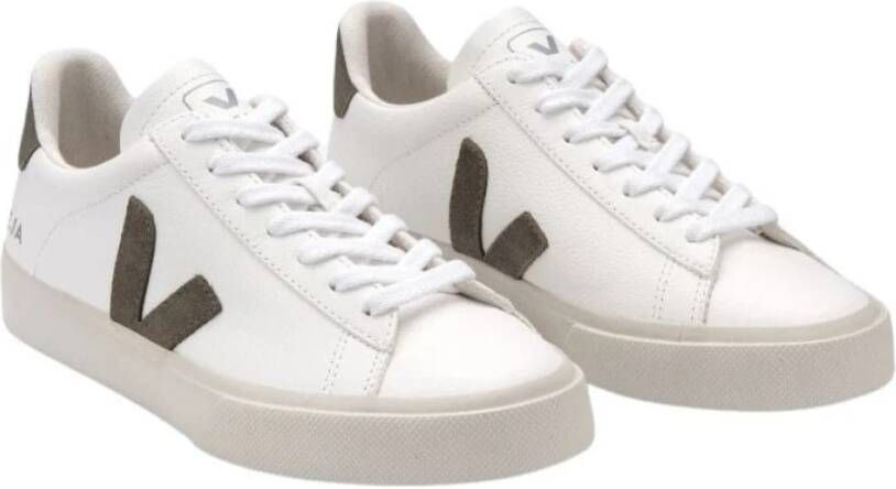 Veja lage schoenen wit/kaki in witte lederen schoenen en kakidi veja. Model met voorste sluiting met veters, V -Leather -logo lateraal toegepast, in tegenstelling tot het logo op de achterkant, stoffen plaat en rubberen zool. Samenstelling: 100% leer, 100% rubber Deze beschrijving is automatisch vertaald.