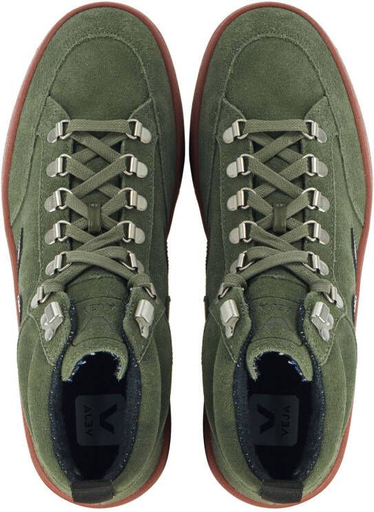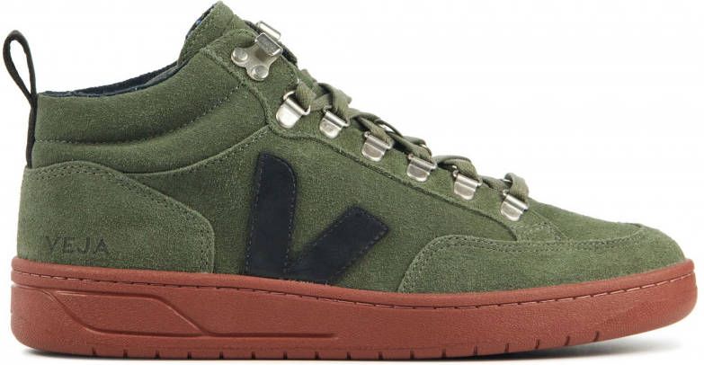 Damesschoen model Roraima in de kleur groen van Veja Pasvorm Dit model van Veja valt normaal op maat Beschrijving Halfhoge sneaker voor dames van het merk Veja. Deze sneaker met ronde neus is uitgevoerd in groen suède. Veja sneakers worden duurzaam geproduceerd. De platte veters zijn door zilverkleurige bergsluitingen geregen. Er worden tevens rode veters bij deze sneaker geleverd. Verder heeft deze schoen zwarte details. De binnenzijde is uitgevoerd in stof en het uitneembare voetbed is te vervangen door een persoonlijke inlegzool. De rubberen loopzool heeft een medium profiel voor stevige grip.