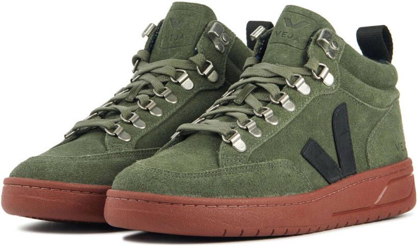 Damesschoen model Roraima in de kleur groen van Veja Pasvorm Dit model van Veja valt normaal op maat Beschrijving Halfhoge sneaker voor dames van het merk Veja.